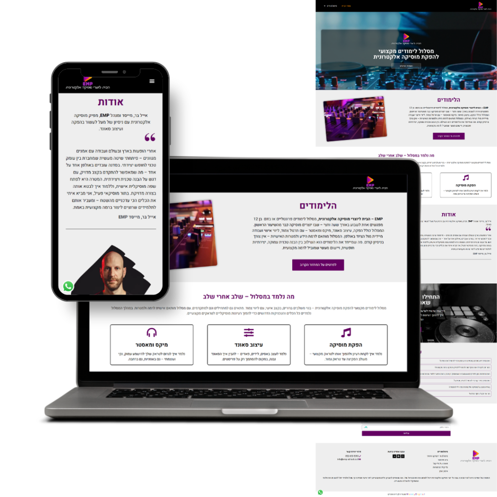 בניית אתר רב־עמודי עבור EMP School, מרכז להכשרה מקצועית המציע קורסים והשתלמויות במגוון תחומים. האתר כולל מבנה תוכן מסודר, עמודי קורסים מפורטים, טפסי הרשמה חכמים ומערכת ניהול פניות. העיצוב מודרני ונגיש, עם דגש על ניווט ברור לתלמידים פוטנציאליים ועל חוויית משתמש שמובילה לרישום מהיר ויעיל.